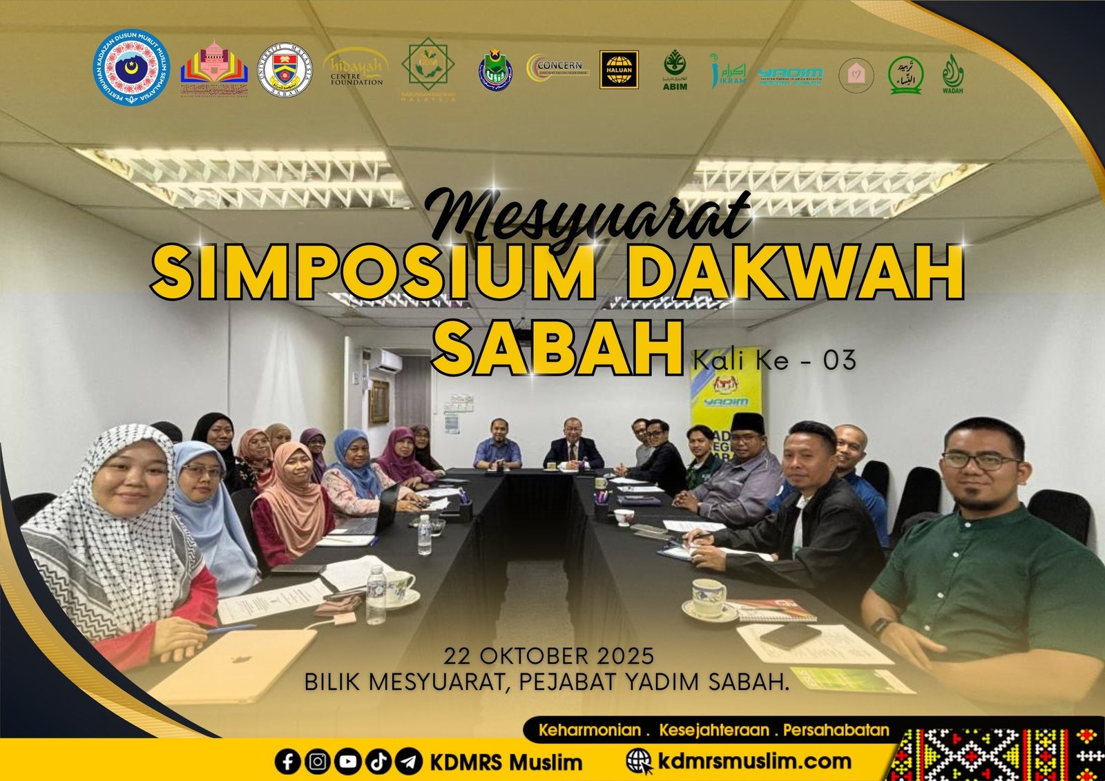 Alhamdulillah, Mesyuarat Kali Ke-3/2025 Rakan Strategik Simposium Dakwah Sabah 2025 telah berjaya dilaksanakan di Pejabat YADIM Sabah dengan penyertaan rakan-rakan strategik yang terlibat dalam pelaksanaan program tersebut.